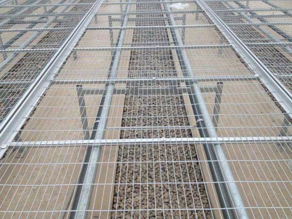 苗床網片是選用優質低碳鋼絲(熱鍍鋅絲,冷鍍鋅絲,冷拔絲,改拔絲)通過精密的自動化機械焊接制成。苗床網片成型后進行鍍鋅(電鍍或熱鍍)。
